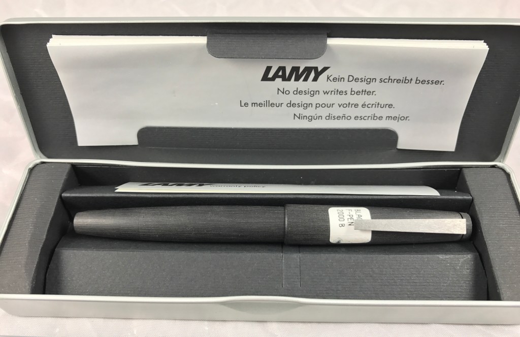 Mint stickered Lamy 2000 fountain pen with a beautiful broad nib. If you don’t own a Lamy 2000 yet, why not?