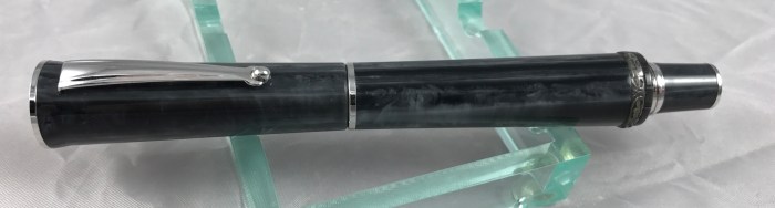 Hand-made Italian acrylic resin has an ebonite effect. This pen is equipped with a size #4 14tk fine gold nib.
