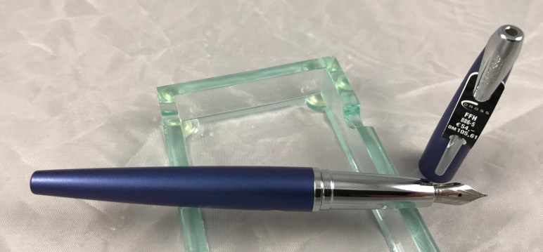 Cross ATX fountain pen in Azurite Blue with a medium steel nib. Brand new in box with all papers and packaging. Includes the converter (a pretty blue one) and a couple of cartridges.